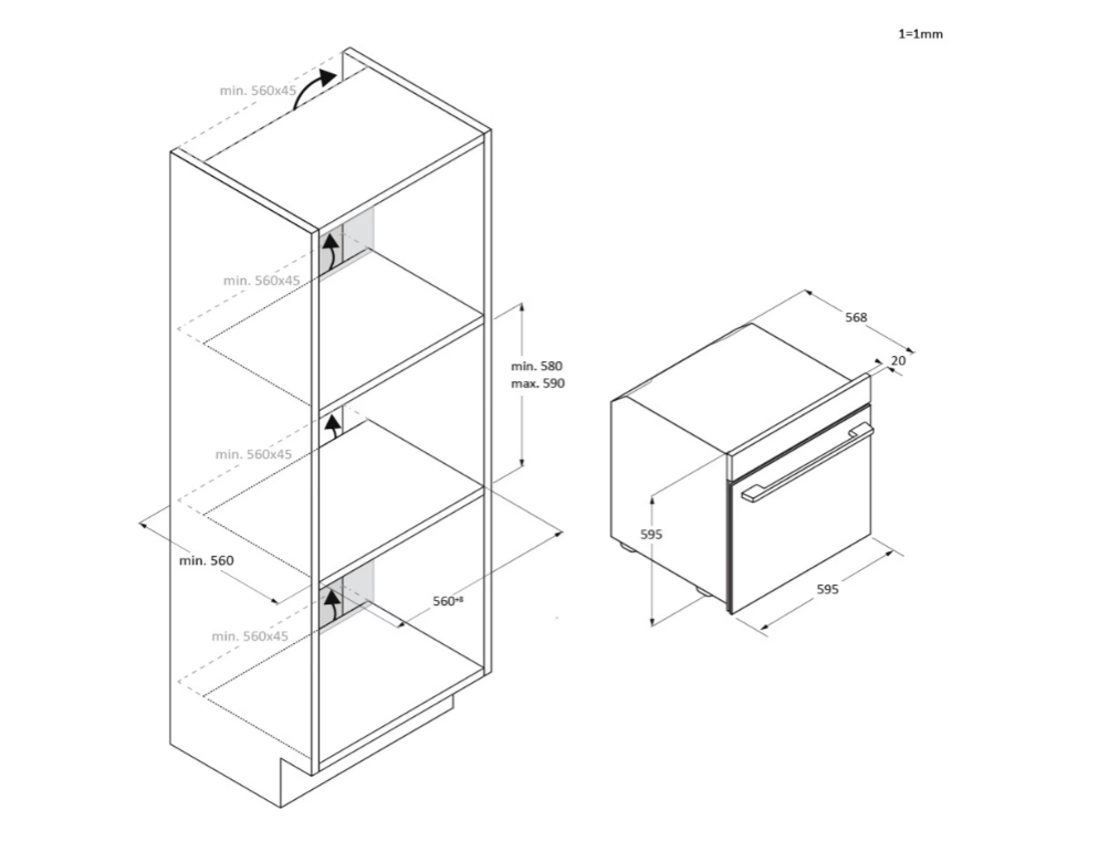 | Výška pro vestavbu cm | 59.5 |